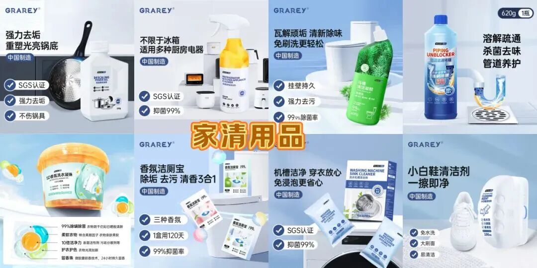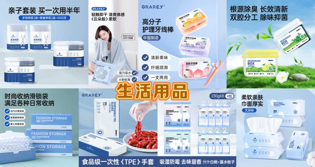 GRAREY(格瑞亚)致力于研发“高颜值、高品质、高性价比”的居家生活用品。主营产品包括厨房用品、生活用品、家清用品、香氛除味、旅行用品等。企业自2019年深入拓展二线电商市场。